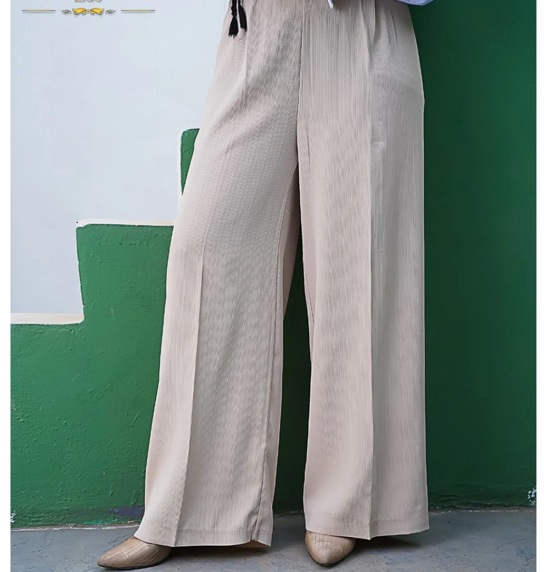 شلوار مازراتی با بافت میله ای براق و رنگ بندی مشکی، سرمه ای، کرمی و نخودی.